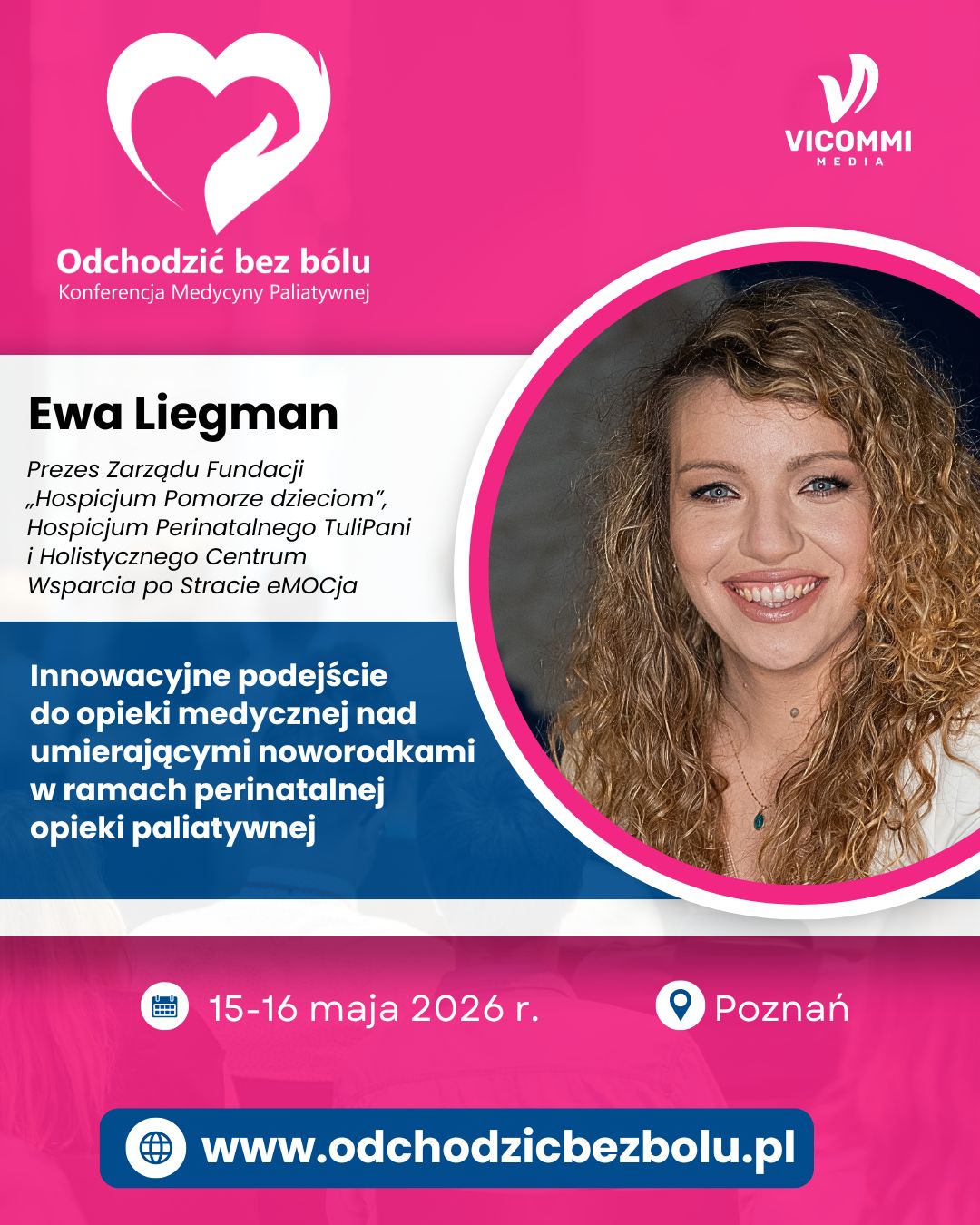 W maju odbędzie się V edycja Ogólnopolskiej Konferencji Medycyny Paliatywnej „Odchodzić od bólu. Jedną z prelegentek będzie Ewa Liegman czyli prezes Hospicjum Perinatalnego TuliPani, Hospicjum Pomorze Dzieciom i Holistycznego Centrum Wsparcia po Stracie eMOCja.
